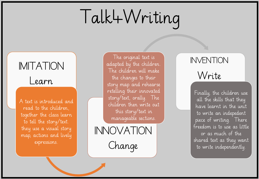Talk for Writing is a powerful tool because it follows the core principles of how children learn. It enables them to imitate the language that they need for a particular topic orally before reading and analysing it, then write their own version.