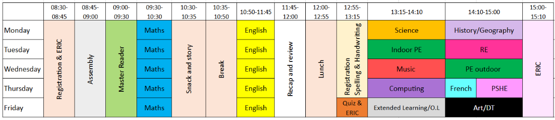 Year 6 Weekly Timetable:
