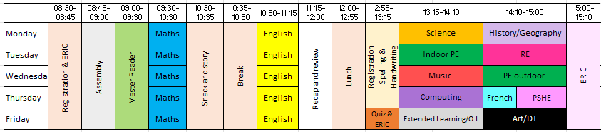 Year 6 Weekly Timetable: